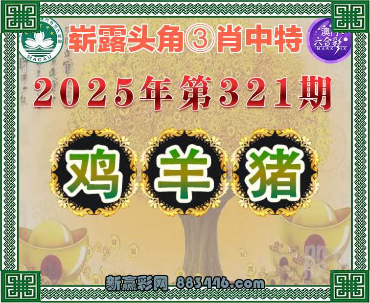 321期:《崭露头角》③肖中特⚽【鸡..猪】开:羊23